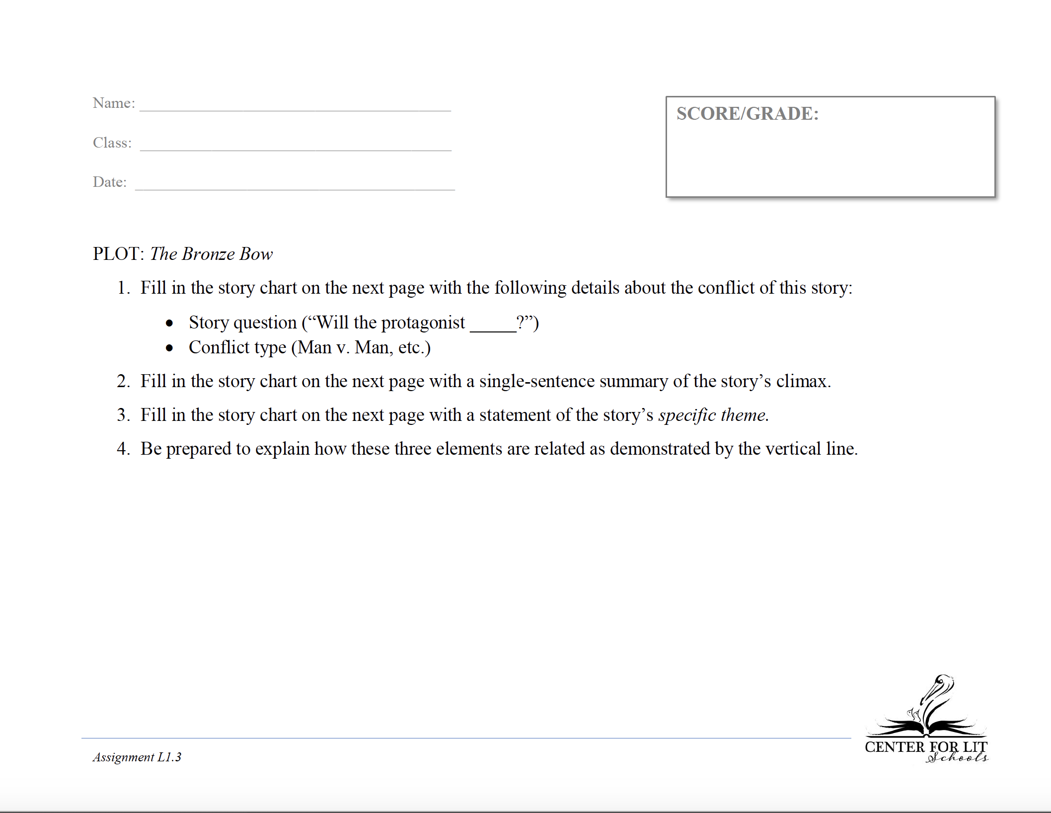 L1.3: The Bronze Bow Story Chart Exercise: Relate Climax, Conflict, and Theme Download Example Bronze BowAdam AndrewsJuly 25, 2019Logic, L1, L1.3, Bronze Bow 0 Likes