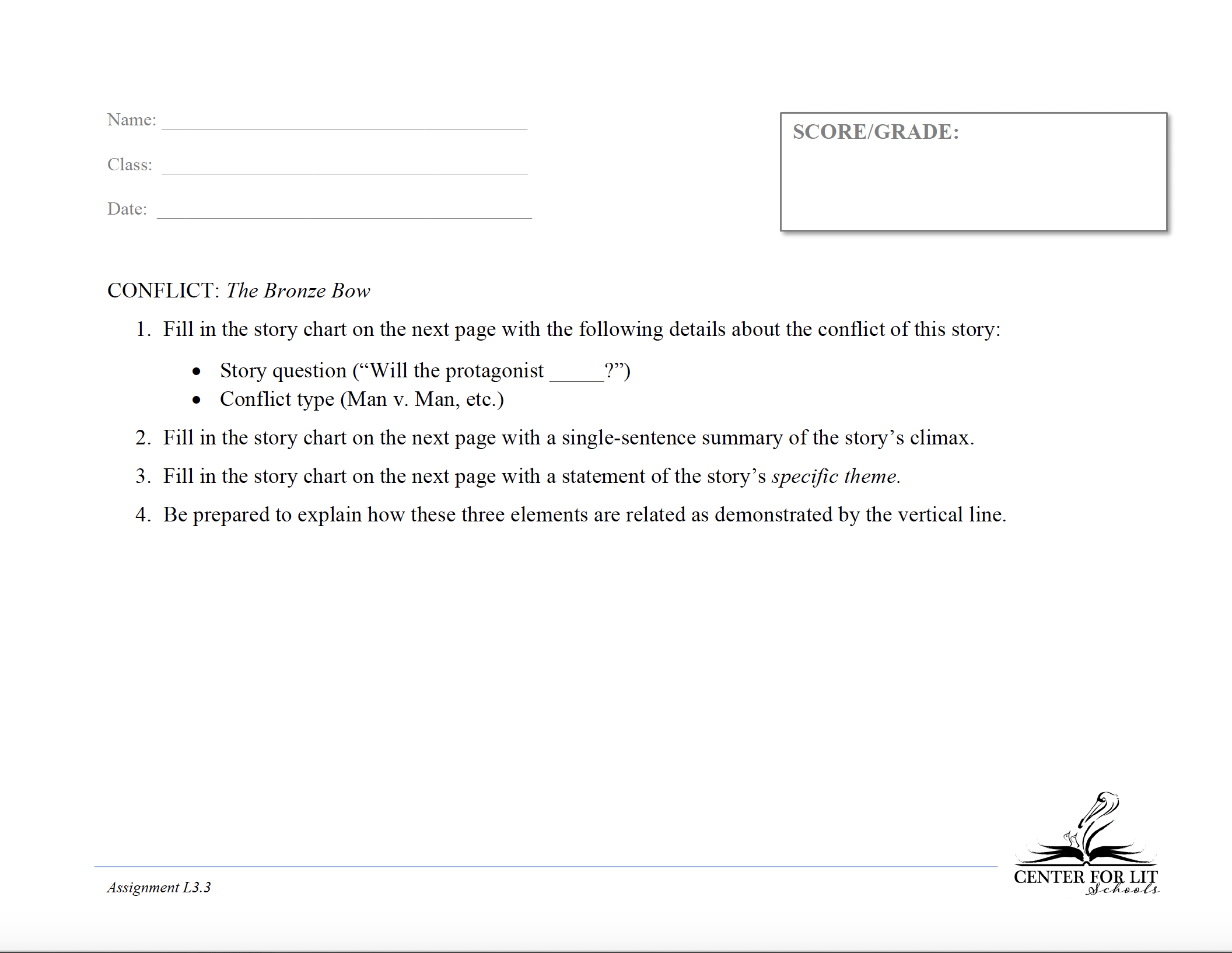 L3.3: The Bronze Bow Story Chart Exercise: Connect Climax, Conflict, and Theme Download Example Bronze BowAdam AndrewsJuly 25, 2019Logic, L3, L3.3, Bronze Bow 0 Likes