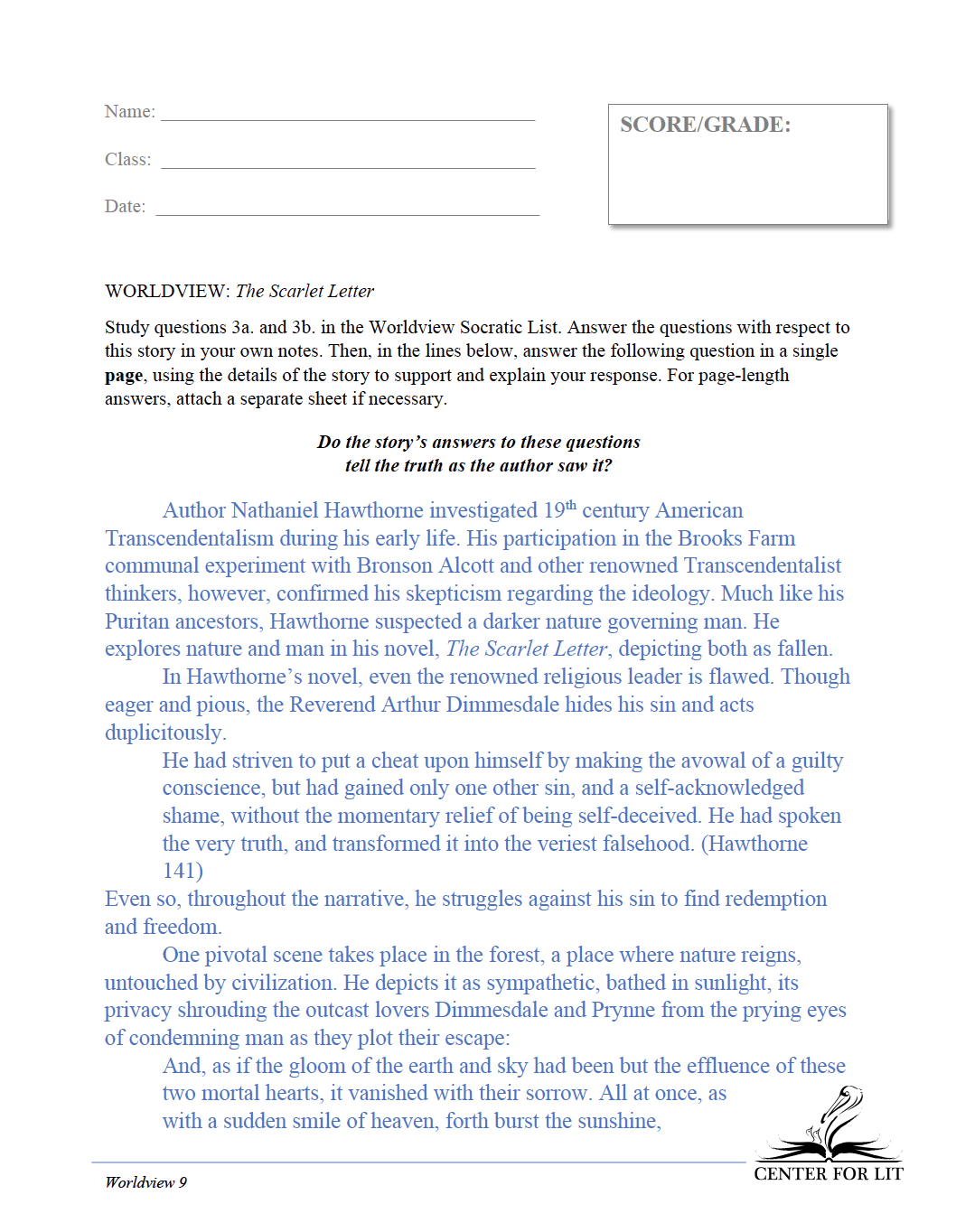 Worldview 9: The Scarlet Letter Socratic List Exercise: “What Does This Story Say About the Natural World?” Does It Tell the Truth as the Author Saw It? Download CenterForLitAugust 7, 2019R14.3, The Scarlet Letter 0 Likes