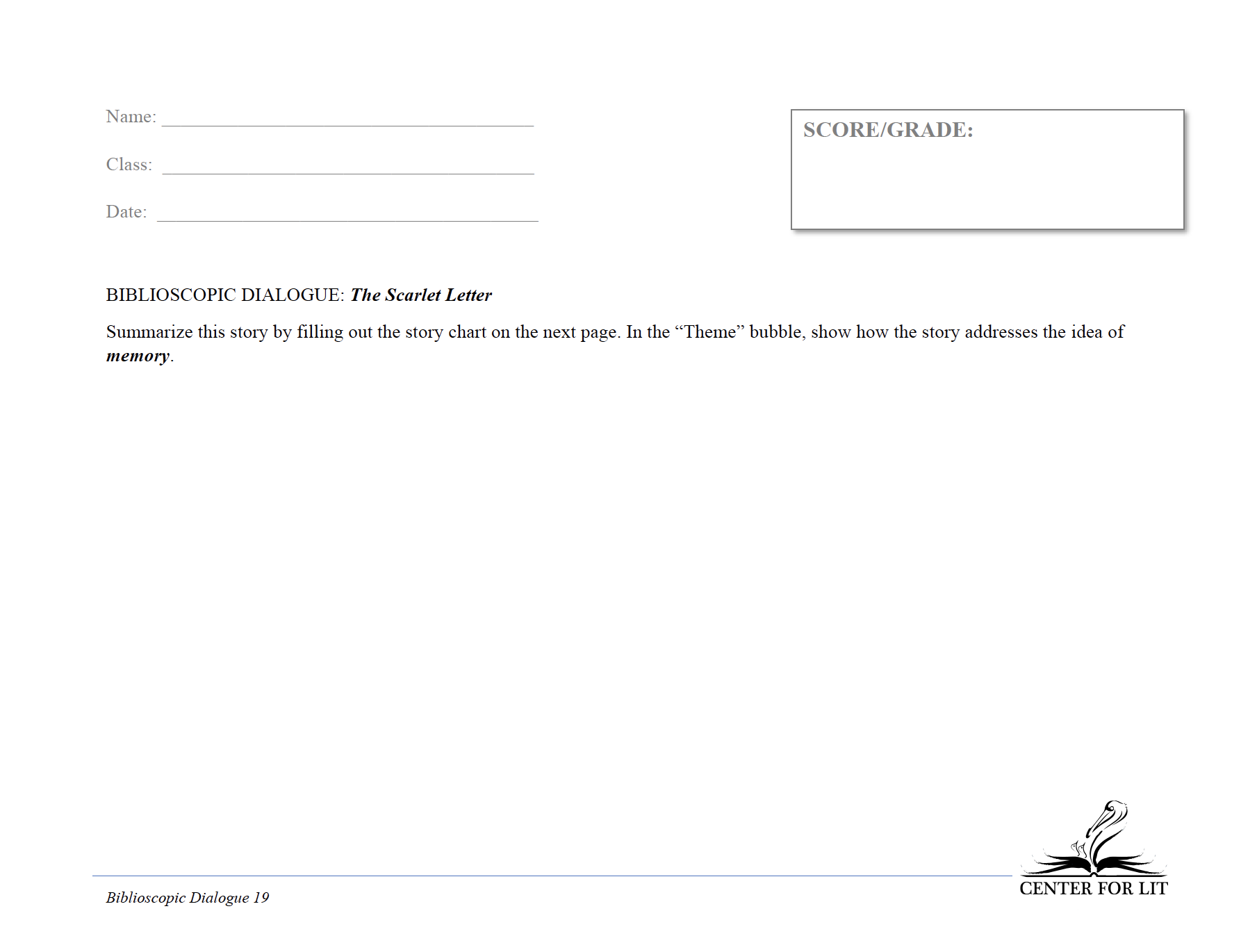 Biblioscopic Dialogue 19: The Scarlet Letter Story Chart Exercise: Relate Title’s Themes to Universal Idea Download CenterForLitAugust 7, 2019R21.4, The Scarlet Letter 0 Likes